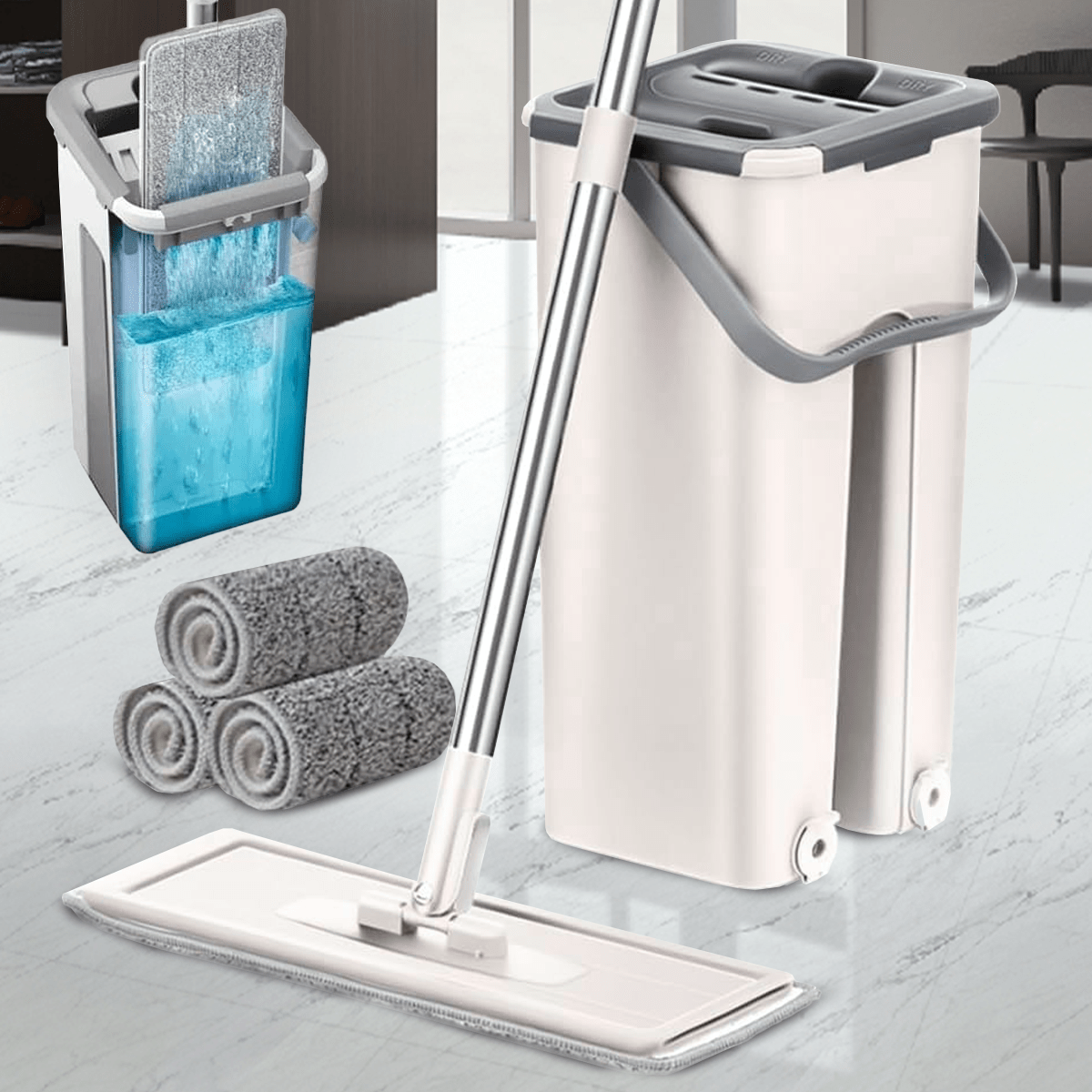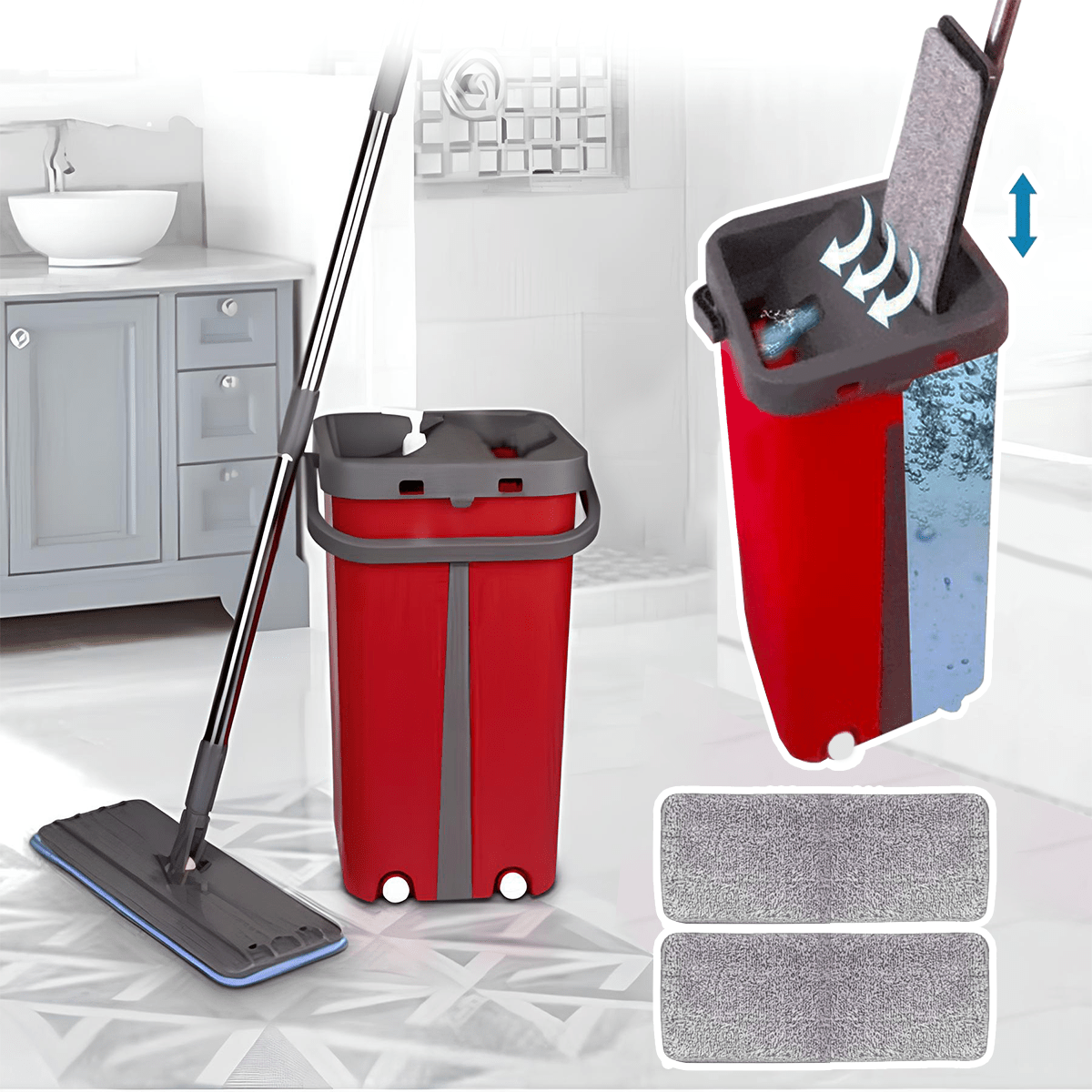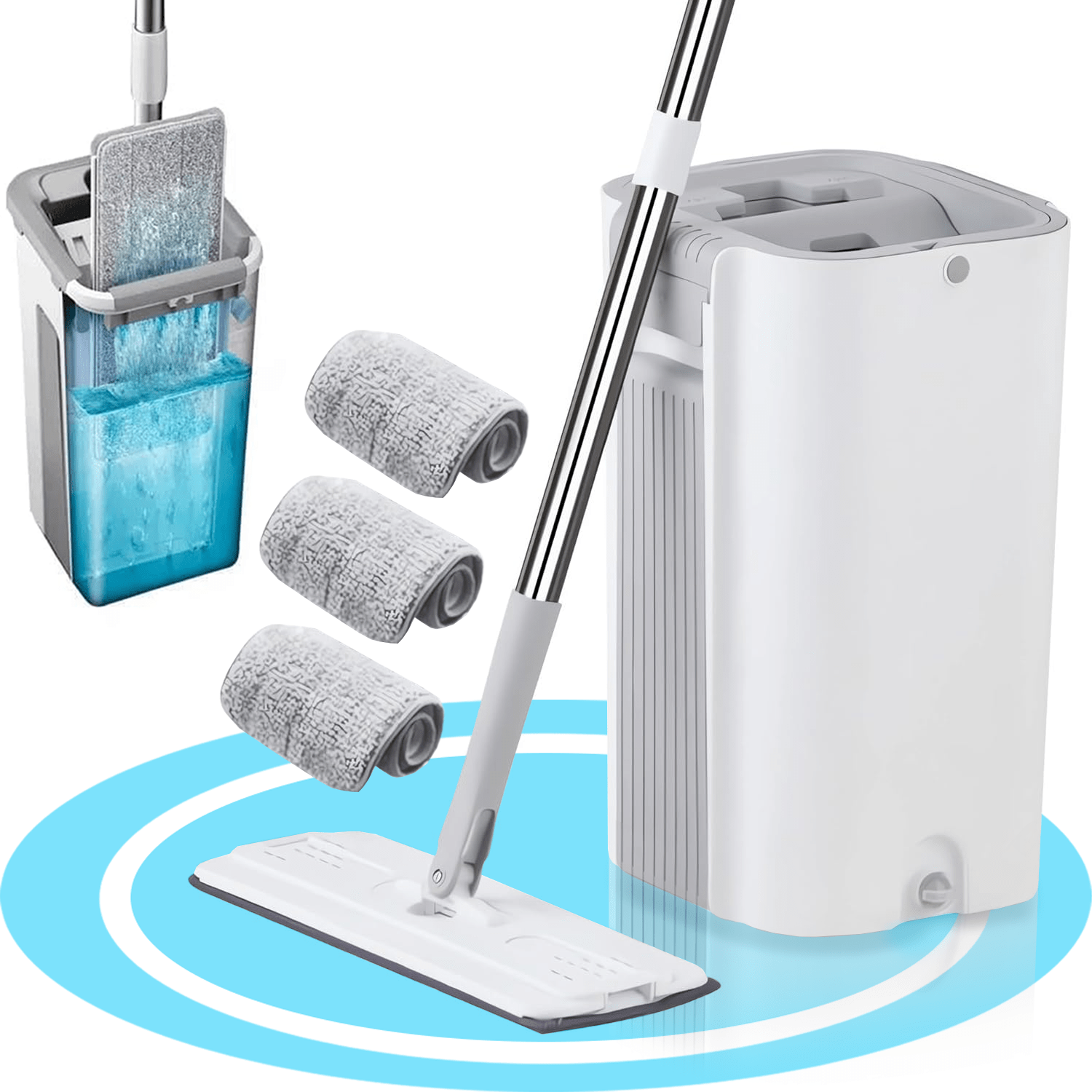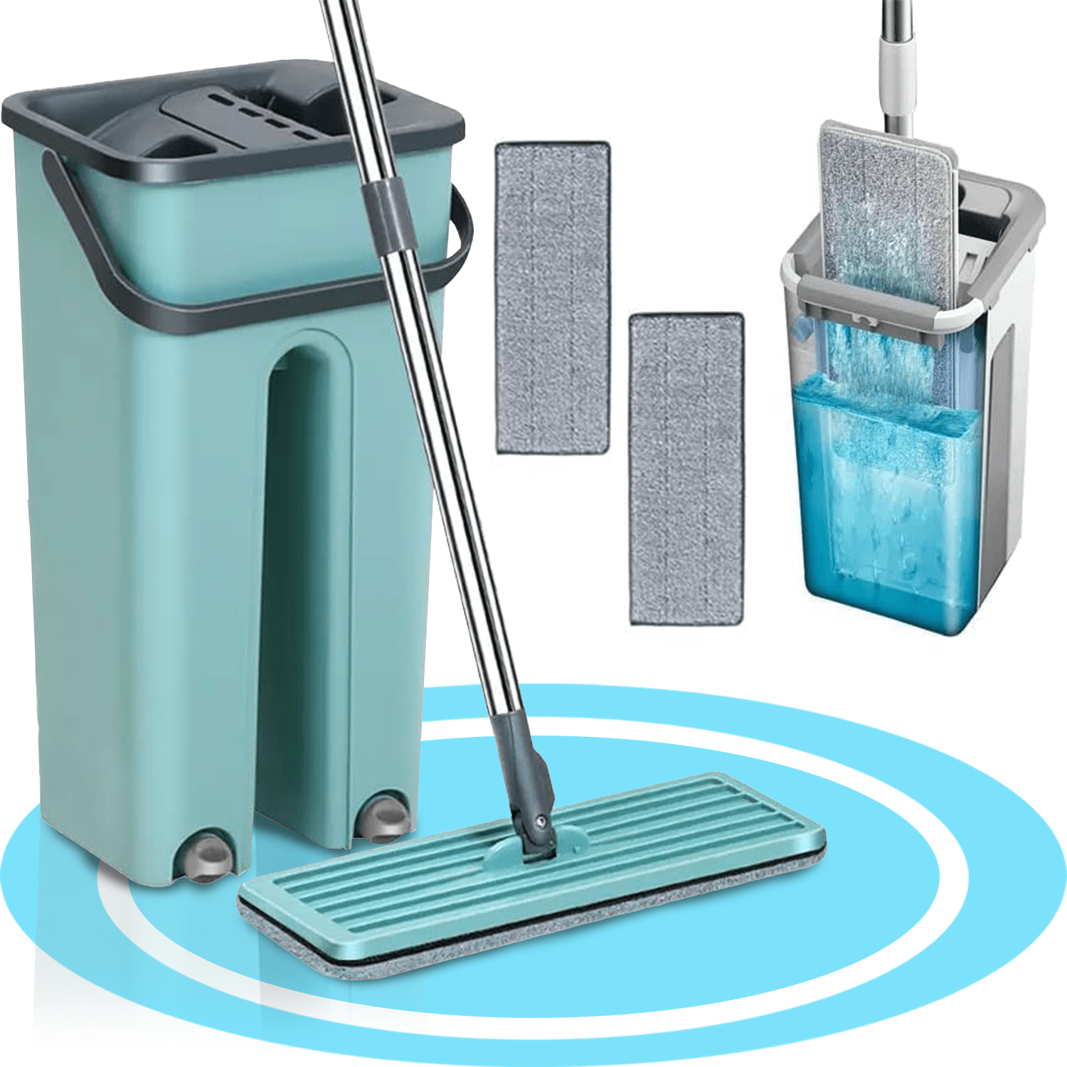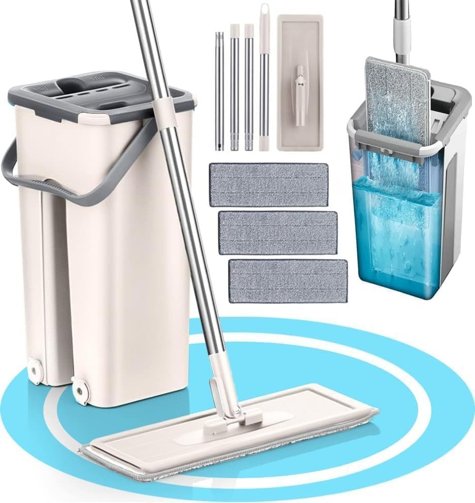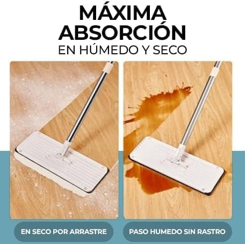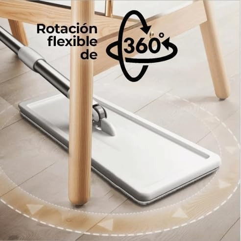 Nuestra mopa ofrece versatilidad en la limpieza adaptándose a diversas superficies, ya sea en seco para captar el polvo, en húmedo para desinfectar o con productos de limpieza. Sus almohadillas de microfibra lavables son suaves y duraderas, capturando eficazmente el polvo y la suciedad.Además, el cubo de fácil escurrido y el diseño ergonómico de la mopa plana.